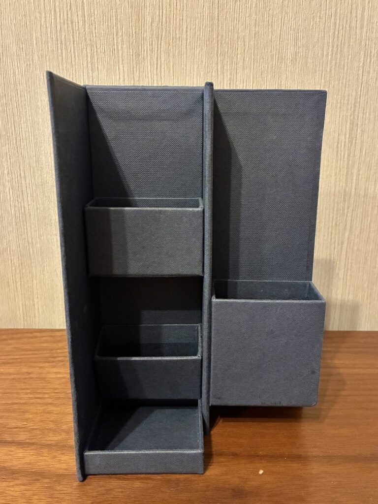 • 外から文具が見えないから、引き出しの中にしまう必要がなく、片付けのストレスを減らせます